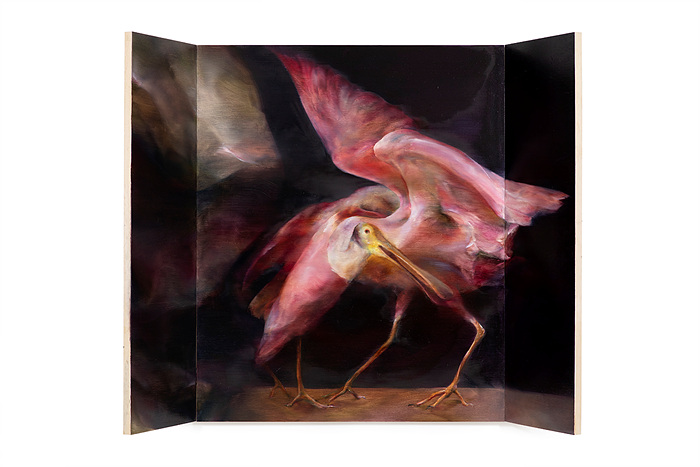 전시 공간에는 분할된 두 캔버스를 이어 그린 대형 회화 <A Charm of Stuffed Hummi..