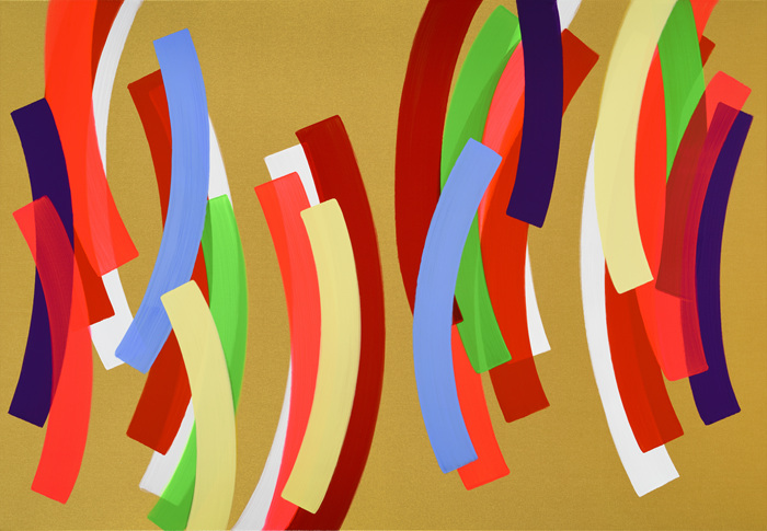 하태임의 컬러 밴드는 단순하지만 반듯하게 채색된 원만한 포물선을 그리면서 세계와 나를 연결하는 개성 어린 플로우를 형성한다. 신체와 붓이 일체가 되어 시적 울림으로 전환된 컬러 밴드는 교차와 반복을 통해 경쾌한 진지함을 전달하며 보는 이들에게 긍정적 메시지를 전달한다.