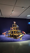 제단화를 연상하는 듯한 ‘1922 Western Avenue’(2023)에서는 상반되는 두 세상이 공존하는데, 두 패널로 이뤄진 회화에서 상단은 볕이 내리쬐는 고요한 수면을 그렸다면, 아래 캔버스 속에서는 물고기, 게, 문어, 가재 등이 서로 엉켜 먹고 먹히는 혼돈의 전란 중이다. 그 와중에 이들의 찢긴 피와 살은 형형색색의 구슬과 섬세한 자수로 엮어 이질성을 배가한다.