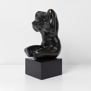 지하 1층에는 대형 평면 회화 작업과 신작 조형 작업을 만나볼 수 있다. 작가는 대형 평면 작업에 대해 “작품이 입체성을 갖고 있어, 정면보다는 위, 아래, 왼쪽, 오른쪽에서 작품을 보시는 걸 추천한다”라며 “리안갤러리 지하 1층 공간에는 계단을 내려가면서 대형 작품을 다각도로 볼 수 있어 보시는 분들도 만족스러운 경험이 되지 않을까 생각한다”라고 밝혔다. 신경철 작품 속 금속 안료의 반사, 반투명한 질감, 명암의 미묘한 떨림은 햇살이 비칠 때마다 달라지는 빛과 그림자처럼, 관객의 움직임에 따라 회화의 물질성과 빛의 현상을 공간적으로 드러낸다.