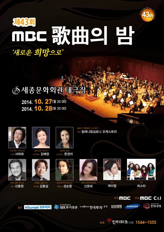 전통의 MBC '가을맞이 가곡의 밤', 27- 28일 이틀간 세종문화회관 대극장