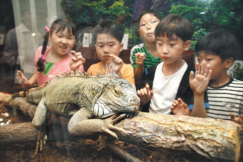 대형 백화점들은 방학을 맞아 가족단위 고객을 끌기 위해 어린이를 위한 다양한 행사를 진행한다. 사진은 작년에 롯데백화점이 진행했던‘파충류 생태전시전’. /롯데백화점 제공