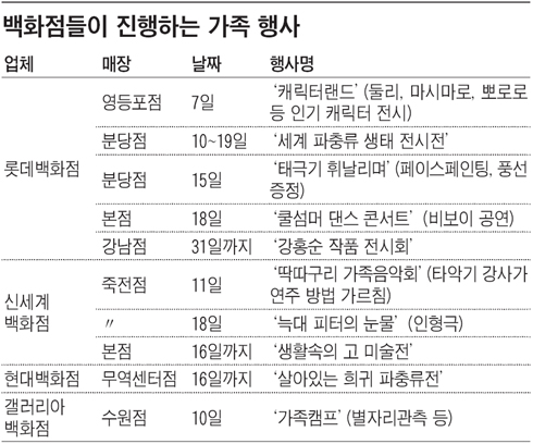 방학기간에 어린 자녀를 데리고 갈만한 곳을 찾는 부모가 많아졌다. 여름 휴가를 다녀온 뒤라 먼 곳을 가기 여의치 않다면 대형 백화점에서 진행하는 행사장을 찾아볼 만하다. 요즘 대부분의 전시회나 체험 전시장의 입장료가 만만치 않기 때문에 백화점의 프로그램을 잘 이용하면 비용을 아낄 수 있다.