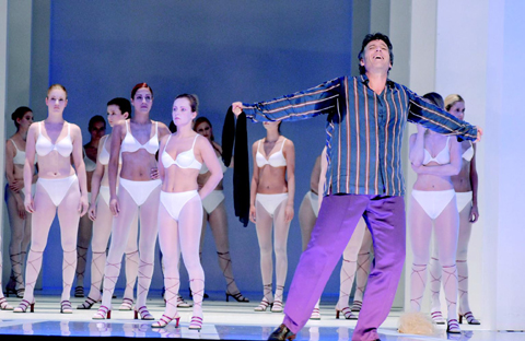 란제리 회사의 협찬을 받아 여성 출연진 대부분이 속옷 차림으로 등장했던 모차르트의 오페라‘돈 조반니’. 주역 돈 조반니는 바리톤 토머스 햄슨(앞쪽)이 맡았다. /잘츠부르크 페스티벌 조직위