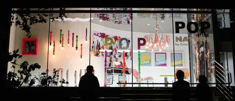 공간을 메우고 있는 독특한 장식도 디카족들이 놓칠 리 없다. 조명, 소파, 소품 등 면면이 예사롭지 않은 장식들은 한국과 영국을 오가며 활동 중인 유명 팝 아티스트 박진우씨의 작품이다. 스타와 작가의 작품이 어우러진 이 이색공간은 조선일보가 5일 문을 연 인터뷰 갤러리 '원(one)'. 작품만 얌전히 전시되는 기존 갤러리와는 다른 빛깔이다. '인터뷰 갤러리'라는 수식 그대로 '인터뷰'와 예술 작품이 한데 녹아있는 '컨버전스(융합)형 갤러리'. 3~4개월 단위로 아티스트의 작품이 전시되고, 그 안에서 인터뷰라는 미디어 행위가 이뤄진다. 기업들이 유명 예술가와 손잡고 '아트 마케팅'을 펼치듯 '미디어'와 '예술'이 융합된 '아트 미디어(Art media)' 개념이 적용된 공간이다.