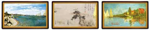 지난달 홍콩 크리스티 경매에서는 40인치 모니터 3개를 연결한 '꿈3'이 6600만원에 낙찰됐다. 모네의 그림에서 나온 배가 남농(南農) 허건(許楗)의 산수화로 들어갔다가 오른쪽의 다른 모네 그림으로 옮겨간다.