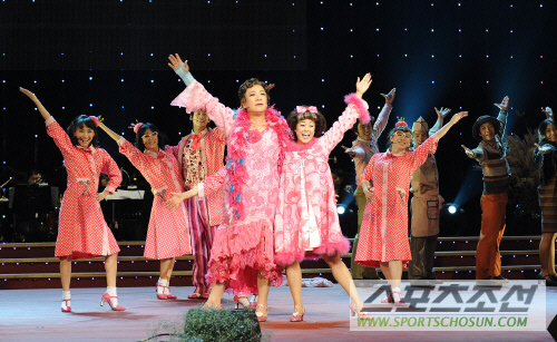 사회자 한석준, 옥주현이 무대로 나와 인사를 하고 있다.