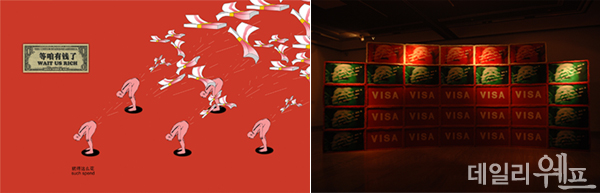 <사진. 왼쪽부터 우 쥔용_Wait Us Rich_2005, 왕 광이_VISA_1994>