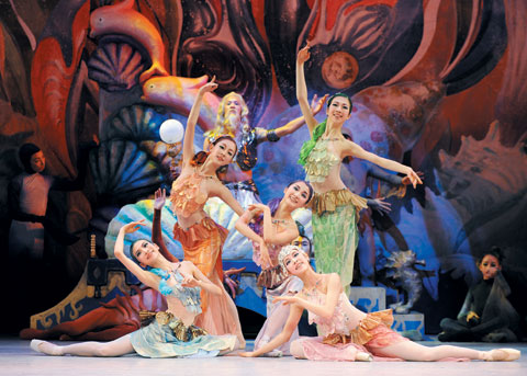 인어공주는 폭풍우로 난파된 배에서 왕자를 구해주면서 사랑에 빠진다. 마법 문어를 찾아간 공주는 '왕자와 사랑을 이루지 못하면 물거품으로 변한다'는 조건을 받아들여 두 다리를 얻고 대신 목소리를 잃는다. 왕자가 인어공주에 입맞춤하려는 순간 마법 인어가 사랑을 가로채고 인어공주는 물거품이 된다. '백조의 호수'를 닮은 비극이다.