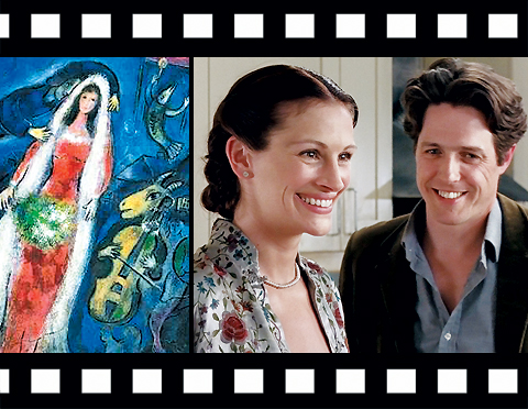 영화 '노팅힐'에서는 한 점의 그림이 남녀 주인공을 이어주는 역할을 한다. 샤갈의 '결혼'(1950)이다. '신부'라고 불리기도 하는 이 그림은 갈등을 딛고 다시 만난 안나(줄리아 로버츠)가 윌리엄(휴 그랜트)의 집에 와서 차를 마시는 장면에서 찻잔을 든 안나의 배경으로 등장한다. 이 그림의 제목만 보아도 영화의 해피엔딩을 점칠 수 있다.