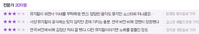 연출은 연극 '친정엄마' '친정엄마와 2박 3일' 등 엄마 시리즈를 잇달아 히트시킨 구태환이, 작곡은 대중음악과 영화음악, 뮤지컬을 넘나들며 활약 중인 스타작곡가 김형석이 각각 맡았다. 김형석은 가슴 시리도록 아름다운 멜로디로 작품의 감성을 최대한 살렸다.
