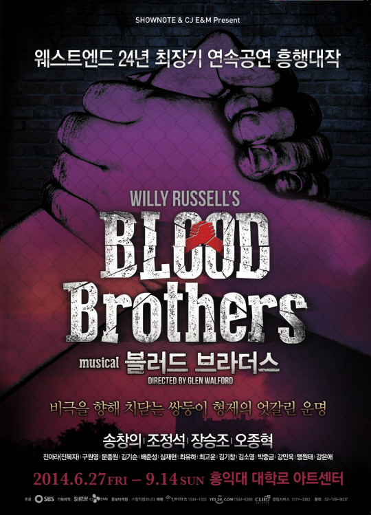 오는 27일부터 9월14일까지 홍익대 대학로 아트센터 대극장에서 공연되는 '블러드 브러더스'는 1990년대 극단 학전이 '의형제'라는 제목으로 번안해 여러 차례 공연해 국내 팬들에게도 낯익은 작품이다.