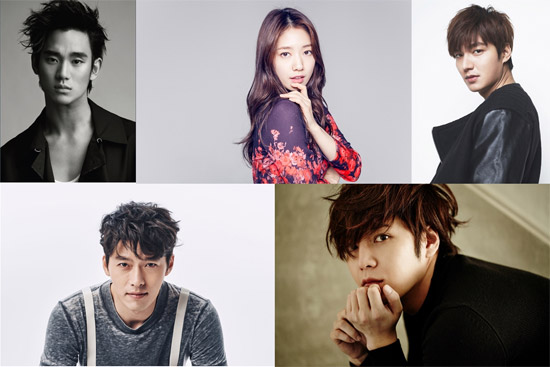 왼쪽 위부터 시계 방향으로 김수현, 박신혜, 이민호, 장근석, 현빈 / 키이스트, 솔트엔터테인먼트, 스타하우스, 트리제이컴퍼니, 오앤엔터테인먼트 제공