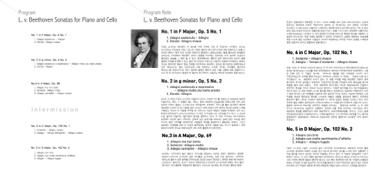 흔히 첼로 독주 소나타로 많이 알려져있지만 제목을 보면 오히려 첼로보다 피아노가 앞에 적혀 있다. 즉, 피아노와 첼로가 조화로운 비중으로 연주된다는 뜻. 지금까지 첼로 위주의 해석이었던 이 작품을 젊은 유망주 듀오가 어떠한 새로운 모습으로 펼쳐낼지 이번 무대에 각별한 관심이 쏠리는 이유. 이러한 궁금증을 연주자와 관객이 함께 소통하며 풀어가는 뜻깊은 무대가 될 것으로 기대를 모은다.