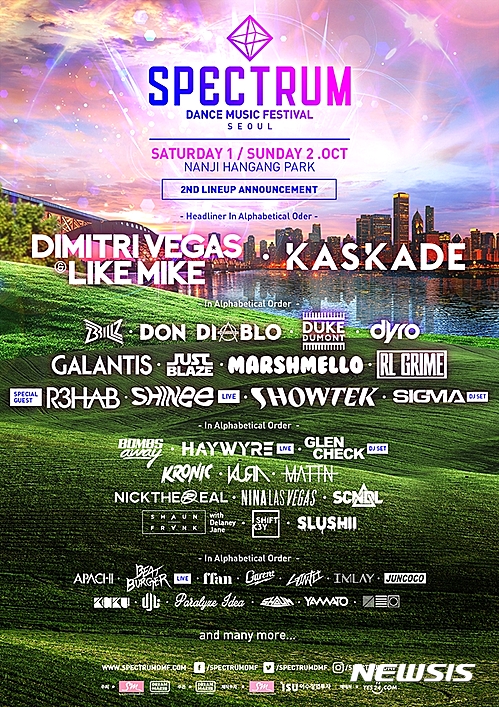이 외에도 '더 기버(The Giver)' '오션 드라이브(Ocean Drive)' 등 명곡을 만든 실력파 프로듀서 겸 DJ 듀크 듀몬트(Duke Dumont), 전 세계적으로 불고 있는 트랩 열풍의 주인공 알엘 그라임(Rl Grime), 쇼텍(SHOWTEK) 형제, 시프트키(Shift K3y), 니나 라스베가스(Nina Las Vegas) 등 트렌디하고 개성 강한 국내외 아티스트 17팀이 2차 라인업에 이름을 올렸다.
