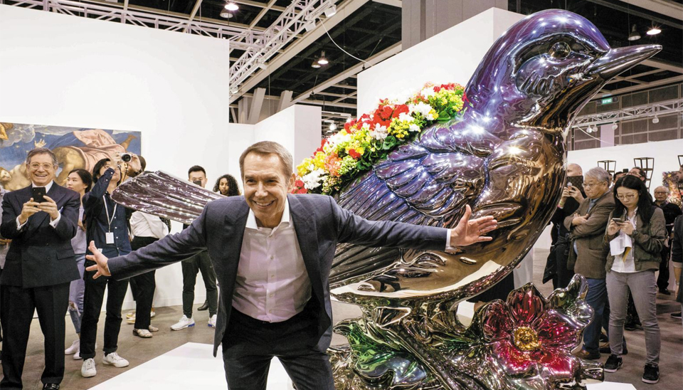 미국 작가 쿤스는 홍콩 아트 바젤의 '아이돌 스타'였다. 이날 장샤오강(張曉剛)이나 앤터니 곰리 같은 유명 작가들이 아시아 최대 아트페어를 찾았지만, 연예인처럼 팬을 몰고 다닌 작가는 쿤스밖에 없었다. 그가 나타나기 전부터 데이비드 즈워너 갤러리 앞에 설치된 최신작 '블루버드 플랜터'는 관람객 이목을 끌었다. 스테인리스 스틸로 만든 높이 2m10㎝ 대형 파랑새의 등에 꽃을 촘촘하게 꽂은 작품이다.