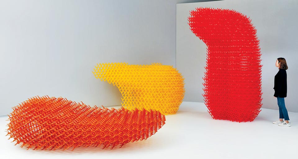 사람의 혀를 수백 배 확대한 듯한 거대한 구조물 셋이 전시장에서 관객을 맞는다. 자세히 보니 어딘가 한글 자음을 닮았다. 'ㄱ' 'ㄴ' 'ㄹ'. 입 밖으로 이 소리를 낼 때 혀가 구부러지는 모양을 형상화한 것이다. 바로 이 모양을 본떠 세종대왕은 한글을 창제했다.