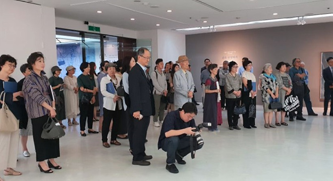 황용엽 초대전 <같은 선상에서> 전시 오프닝 행사가 지난 7일 서울 광화문 조선일보미술관에서 열렸다. 이날 정중헌 전 서울예대 부총장, 김윤섭 한국미술경영연구소장 등 미술계 인사를 비롯해 관람객 100여 명이 전시장을 찾아 황 화백의 전시와 출품작에 높은 관심과 호응을 보였다.