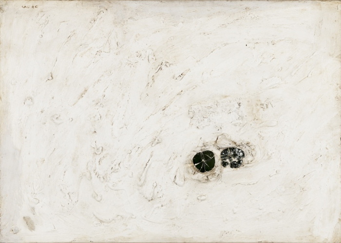 작가가 비록 일본에서 주로 활동했으나 이러한 작업은 좌우익의 대립과 분단이라는 시대적 난관을 ‘균열’로 인식하고 ‘봉합’으로 극복하려는 작가의 태도와 의지를 반영한다. 실제 이 시기 작가는 남북통일활동에도 앞장섰는데, ‘평화통일 남북문화교류촉진문화제’(1961)에 참여하고 재일본조선인총연합회와 재일본대한민국민단 계열의 미술가협회가 연합한 ‘연립미술전’(1961)을 기획하기도 했다. 1969년에는 종이를 ‘원’ 형태로 조심스럽게 자른 작업을 선보이는데 이때 종이의 원은 평면이나 조각이 아닌 물질 자체로 제시된다.