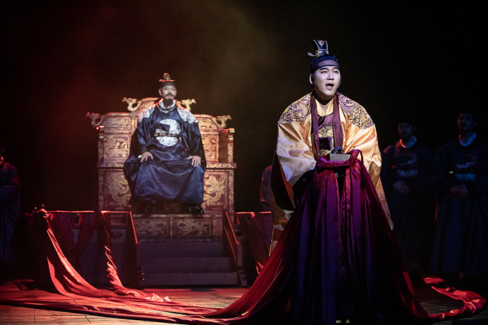 사극임에도 건반과 기타 등 밴드 악기가 주를 이루고 긴장감을 조성하는 드럼 소리가 두드러진다는 점이 독특하다. 간혹 들려오는 국악기 소리가 현대 악기와 잘 어우러지면서도 배경이 조선 시대임을 상기시킨다. 음악이 흘러나오면 관복을 차려입고 체통을 지키던 대신들도 열 맞춰 춤 솜씨를 뽐내 지루할 틈을 주지 않고 보는 재미를 더한다. 무예를 위해 캐스팅한 전문 무술인이 무대에 올라 실감나는 칼싸움을 연기한다. 극 시작부터 좌중을 압도하는 군무 또한 아이돌 무대를 방불케 한다. 소헌왕후의 아버지가 역적으로 몰려 흔들리는 민심을 보여주는 넘버 ‘달이 해를 먹었다’는 한국 무용을 연상하는 움직임과 국악의 조화로 주연 배우 하나 없이도 깊은 인상을 남긴다.