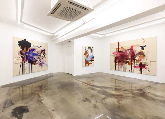 선혈로 뒤덮인 듯 강렬한 붉은 화면이 인상적인 엘리자베스 닐(Elizabeth Neel·45)이 빚어낸 형상은 캔버스에 아크릴 물감을 부은 뒤, 붓질하고 인쇄하고 접고 스탬프를 찍고 말아서 끄는 등의 여러 과정을 거친다. 가장 마지막에는 나무틀로 늘린 후에야 그의 화면이 비로소 완성된다. 마치 밭을 경작하고 고르듯 제작한 작업들은 실제 미국 버몬트주 모리스 타운에 있는 농장 헛간에서 탄생했다.