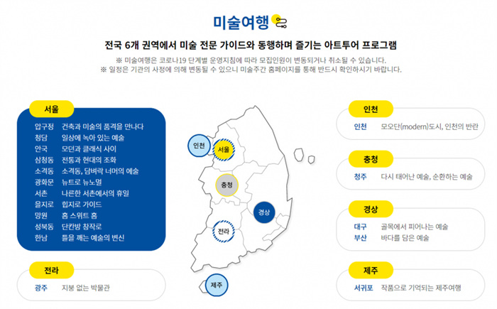 ─‘2021 미술주간’ 기간, 전국 6개 권역에서 미술 전문 가이드와 동행하며 즐기는 아트 투어프로그램 ‘미술여행’이 진행된다.