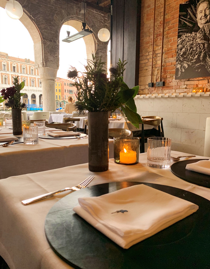이탈리안 음식과 베네치안 디쉬를 따로 구분해 메뉴판을 주는데, 박스 안에 카드 형식으로 제작된 메뉴가 한 권의 아트북을 연상한다. 웨이트리스로부터 식당의 스페셜티 디쉬로 베니스 스타일의 회 메뉴인 ‘Raw seafood platter’(€48)를 추천받았다. 옅은 허브향이 나는 회를 간장이 아닌, 와사비와 레몬 베이스의 가니쉬 소스에 찍어 먹는 것이 이채롭다. 또 다른 베네치안 음식으로는 머스코비 오리고기로 만든 라구 베이스의 뇨끼 ‘Gnocci with muscovy duck ragu’(€28)도 먹어봄 직하다. 오리고기로 만든 라구지만 한국식 불고기 맛이 나 큰 거부감 없이 누구나 즐길 수 있다.