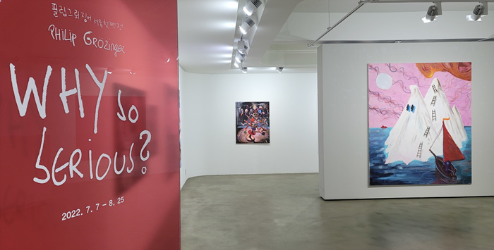 그뢰징어가 한국을 찾았다. 작가의 아시아 첫 개인전 ‘Why So Serious?’가 8월 25일까지 서울 청담동 호리아트스페이스와 아이프라운지 그리고 삼청동 초이앤초이갤러리 세 곳에서 동시 개최된다. 회화부터 드로잉에 이르기까지 작가의 독특한 작업세계 면면을 확인할 수 있는 작품 80여 점이 내걸린다.