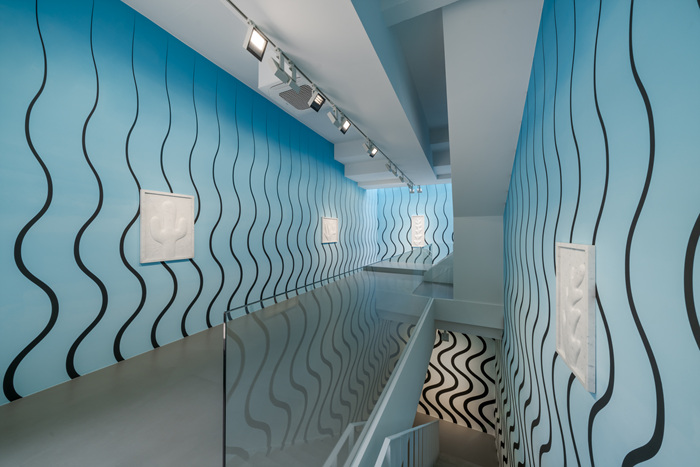 이번 전시는 작가는 다양한 분야를 넘나드는 접근 방식을 통해 신중하게 사유한 다양한 재료를 활용, 이를 통해 유쾌하면서도 무척 정치적이고 사회 참여적인 내러티브를 보여주는 형태를 공간 안에 만들어 낸다. 특히 작가는 벽화 작업 ‘Underwater Wildfire (blue gradient)’을 통해 단순 벽화를 넘어 전시 공간 전체를 하나의 작품으로 만든다. 전시장 아래층에서 위층으로 이어지는 설치 작업은 몰입적인 분위기를 만들어 내며, 지속적으로 진화하는 작가의 예술적 접근을 보여준다.