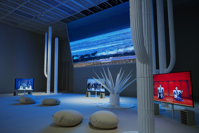 국립현대미술관 서울관 서울박스에 들어서면 뱃고동 소리를 연상하는 웅장한 음악 소리가 관객을 맞이한다. 공중 곳곳에 매달린 이국적인 식물 이파리와 붉은색 열매 형상을 한 오브제들이 보는 이의 눈을 휘둥그레 만든다.