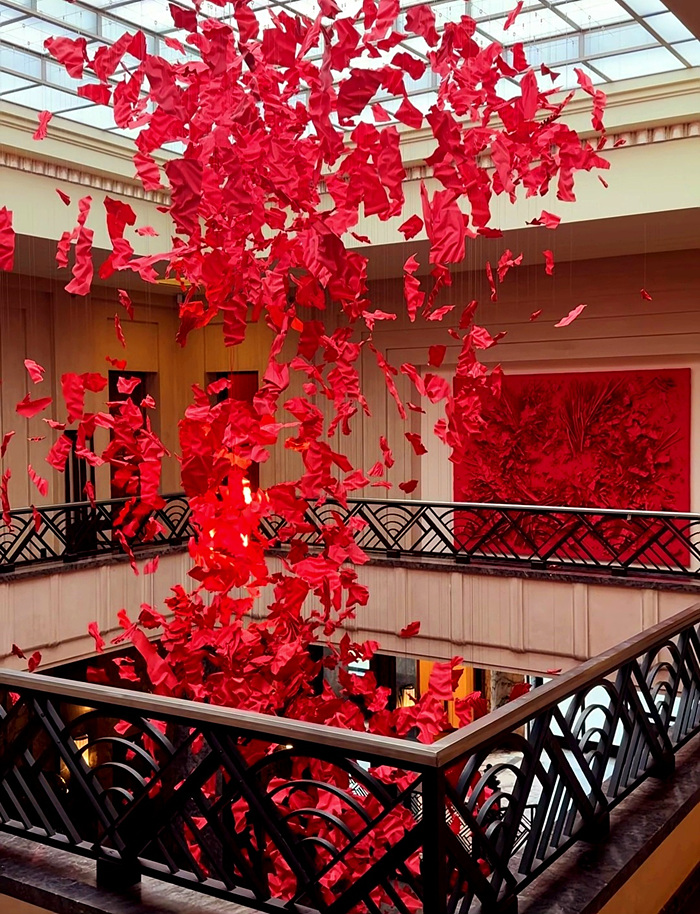 뿐만 아니라 이브 클랭(Yves Klein), 빌 비올라(Bill Viola), 바르텔레미 토구오(Barthélémy Toguo), 알리 체리(Ali Cherri) 등 동시대 대표 작가 50여명이 함께한다. 특히 김지아나는 빌라엉팡 중앙홀이라는 상징적인 공간에서 대표작 ‘삶과 붉은 불’과 신작을 선보인다. 이 작품은 불꽃과 연기 같은 원초적 이미지를 포슬린 재료와 결합해 불이 가진 창조성과 파괴성, 탄생과 소멸의 양가성을 시각적으로 표현한다. 나아가 개인과 공동체의 창조적 열정, 변혁, 그리고 생명 순환에 대한 사유를 제안한다.