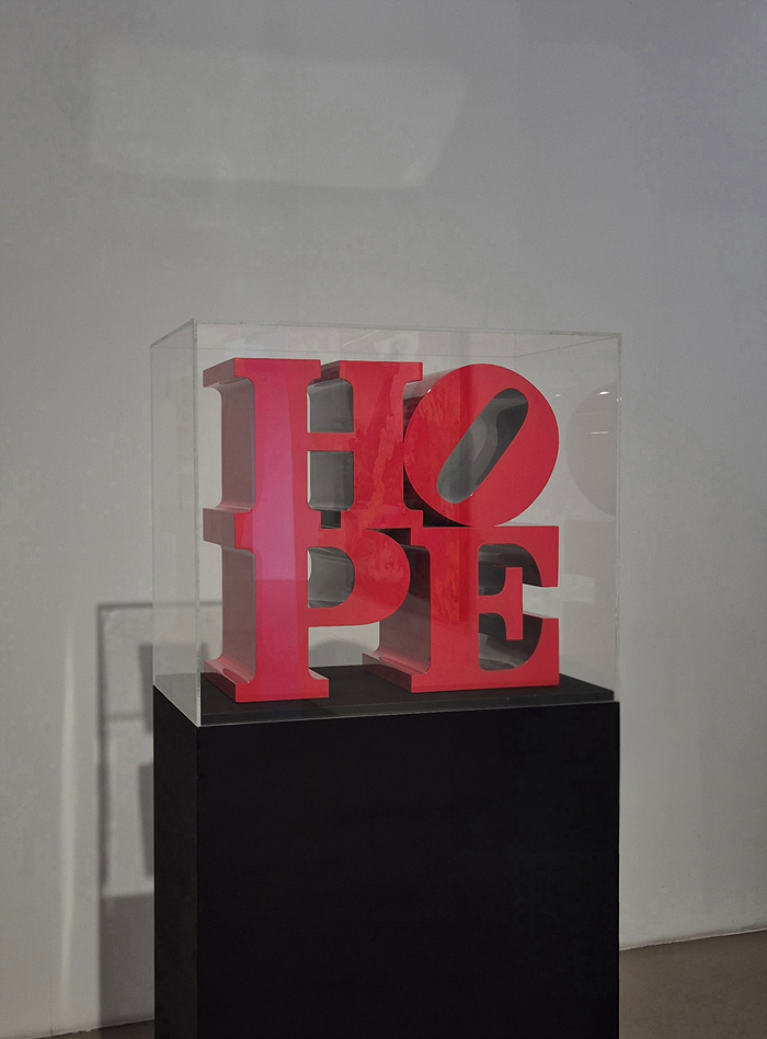 희망(HOPE). 단 네 글자의 짧은 단어지만, 로버트 인디애나(Robert Indiana)에게는 시대와 사회, 그리고 개인의 염원을 응축한 상징이 됐다. 특히 2008년 오바마 대선 캠페인과 맞물리며 변화와 희망을 상징하는 이미지로 널리 확산됐다. 작품 ‘HOPE’에서 가장 눈길을 끄는 것은 기울어진 알파벳 ‘O’다. 완전한 안정 대신, 흔들림 속에서 나아가려는 인간의 의지를 드러내는 장치이자, 희망이란 언제나 고정된 상태가 아니라 ‘진행 중인 과정’임을 암시한다.