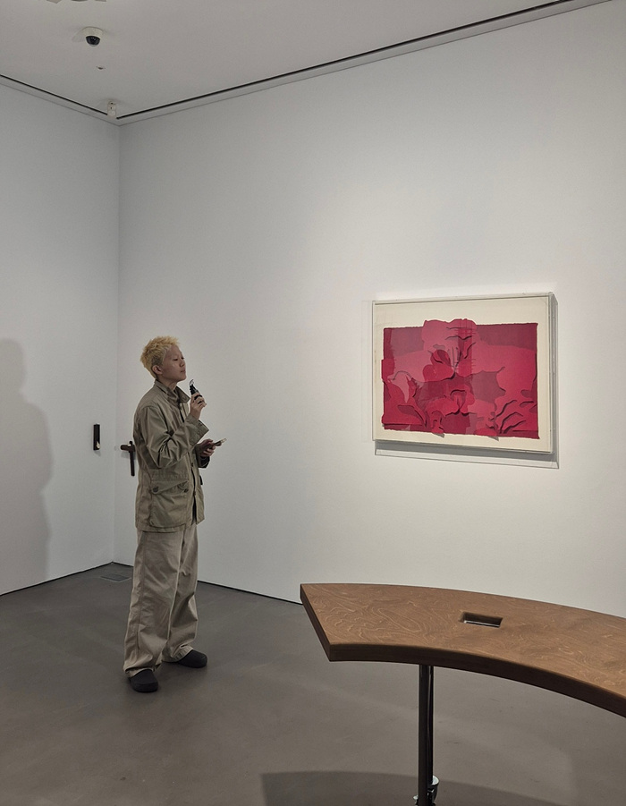전시장 외부 윈도우 갤러리에 자리한 허지은의 ‘라이에로 가는 길’(2025)은 전시의 입구이자 출구의 역할을 한다. 허지은은 자신의 성장 배경인 몰몬교(Mormonism)를 바탕으로, 종교 체계의 유산에 대해 꾸준히 탐구해왔다.
