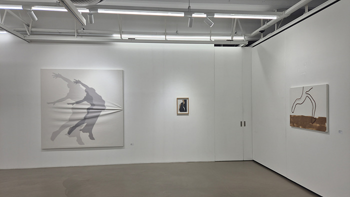 ‘네 아니요’. 전시 제목에서 알 수 있듯, 전시장에 내걸린 곽남신의 작품은 흑과 백, 입체와 평면, 빛과 그림자 같은 상반된 경계를 아슬아슬하게 넘나드는 긴장감과 위트를 담고 있다. 특히 이번 전시에서 곽남신은 캔버스에 주름이지도록 구기거나, 또는 구긴 것처럼 캔버스 위에 생생한 음영 효과를 더해 관람객의 시선을 혼동시키고 일종의 놀이적 시각 경험을 선사한다.
