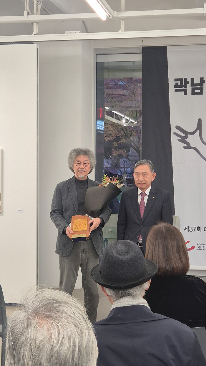 6일 ACS(아트조선스페이스)에서는 제 제37회 이중섭 미술상 시상식이 열렸다. 이날 대표로 심사평을 발표한 정일주 퍼블릭아트 편집장은 “곽남신의 예술이 걸어온 행보는 요란하지 않고 품위가 있다. 당대를 주도했던 모더니즘 미술의 근엄주의와 형식주의에 눌리거나 치우치지 않았고, 그럴싸하게 들리는 ‘후기’나 ‘해체’ 운운하는 담론에 편승하지도 않았다”며 “무겁지 않지만 진지하고, 선언하거나 설득하려 들지 않지만 메시지와 진정성을 소중하게 여긴다는 점에서 이중섭과 교차한다”고 밝혔다.