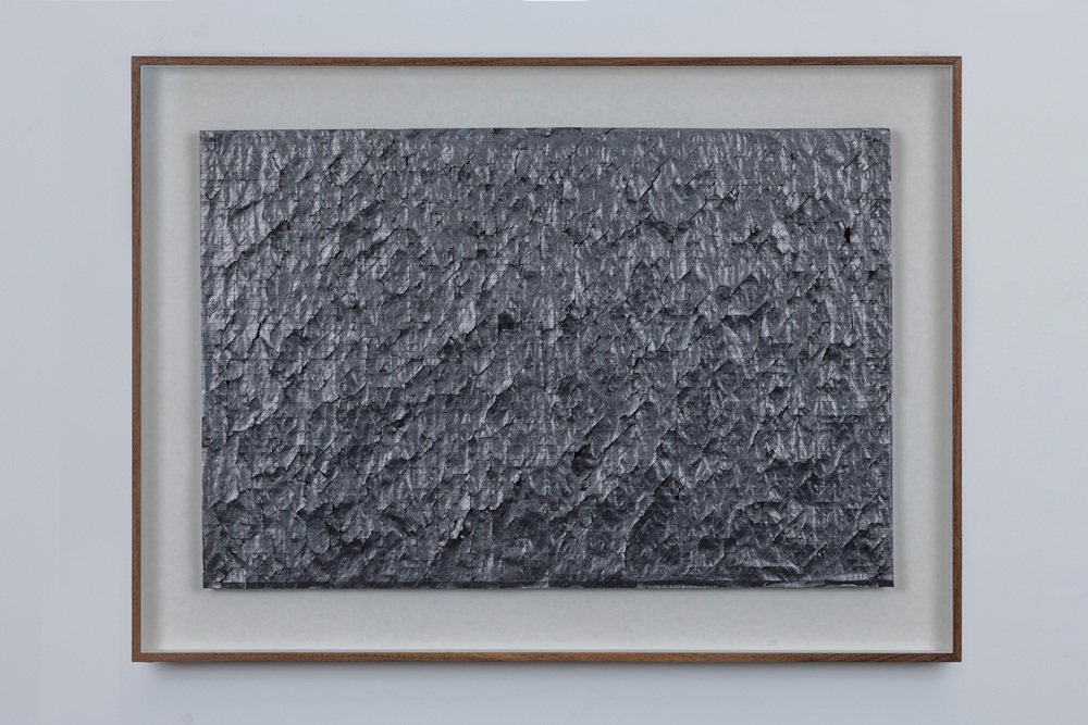 1차원의 선을 수없이 그으면 2차원의 면이 된다. 최병소(1943~2025)는 신문지 위에 볼펜과 연필로 선을 반복해 그으며 우리가 사는 세계를 넘어 미지의 영역으로 팔을 뻗는다. 신문은 현실이다. 최병소는 신문지를 접어 그리드를 만들고, 각 칸을 한 획의 선으로 채워 넣는다. 수없이 그어낸 탓에 찢어지고 구멍이 뚫리기도 한다. 깊고 촘촘한 검은 면은 본래 선이 모인 집합이라고는 상상하기 어렵다. 그저 검은 덩어리는 신문의 정체를 숨기고 본연의 의미를 알 수 없는 새로운 모습으로 재탄생시킨다. 작가가 선보인 ‘신문 지우기’ 연작은 1970년대 언론 통제의 시대에 대한 분노와 저항의 표현이 되기도 하며 답답한 현실을 초월하고 도달하고자 하는 예술적 이상향이다.