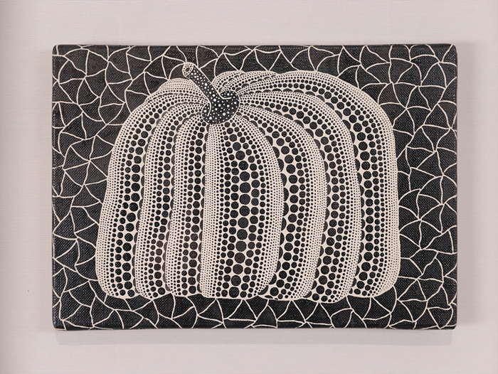 쿠사마 야요이의 호박은 다양한 크기의 원으로 뒤덮여있는 모양새다. 표면을 가득 채운 패턴은 단순한 장식적 무늬가 아니라, 작가가 평생 탐구해 온 ‘무한과 반복’의 개념을 상징한다. 하나의 점은 작고 미미한 존재처럼 보이지만, 그것이 끝없이 반복될 때 개별성은 사라지고 거대한 전체 속으로 흡수된다. 쿠사마는 이러한 과정을 통해 인간 존재 역시 우주 속 하나의 점에 불과하다는 생각, 즉 자아의 소멸과 무한으로의 확장을 시각적으로 표현하고자 했다.